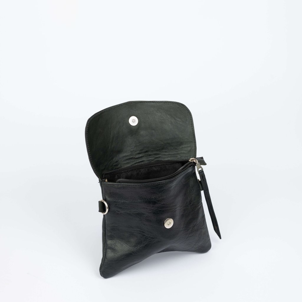 Hornú časť kabelky uzatvára magnetické zapínanie spolu so zipsom a tak Vaše osobné veci zostanú v bezpečí. Decentný ramenný popruh je odnímateľný, takže kabelku môžete nosiť buď cez rameno alebo elegantne v ruke. Kožená crossbody kabelka Casablanca je ručne vyrobená zo 100% kozej kože bez použitia chemikálií.
