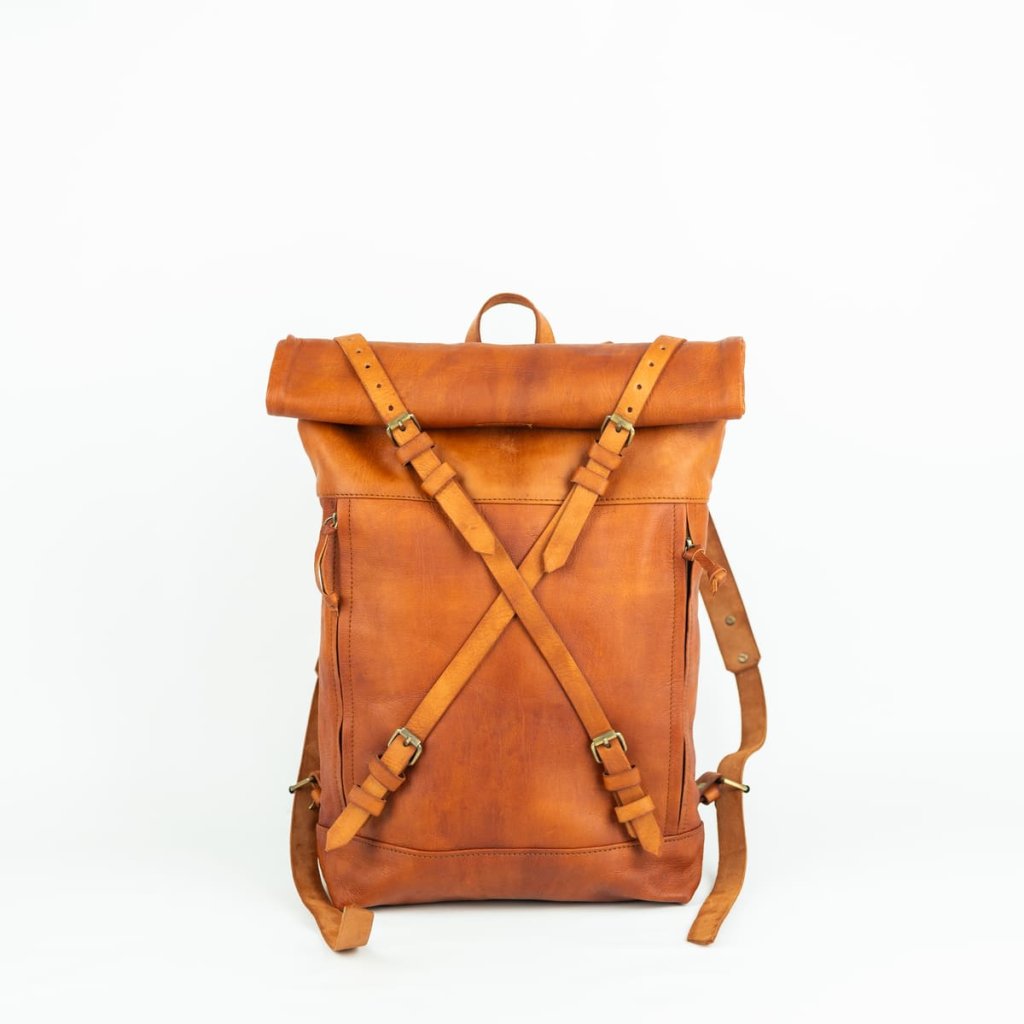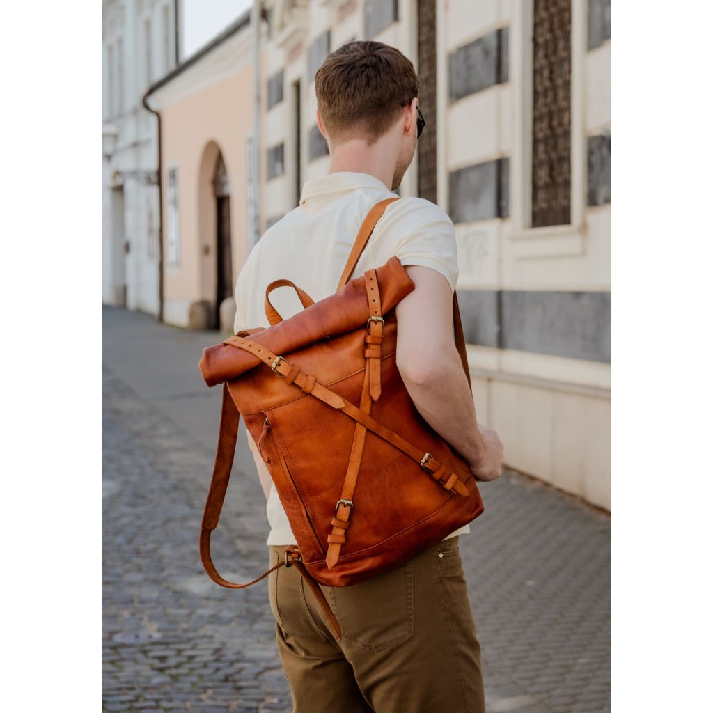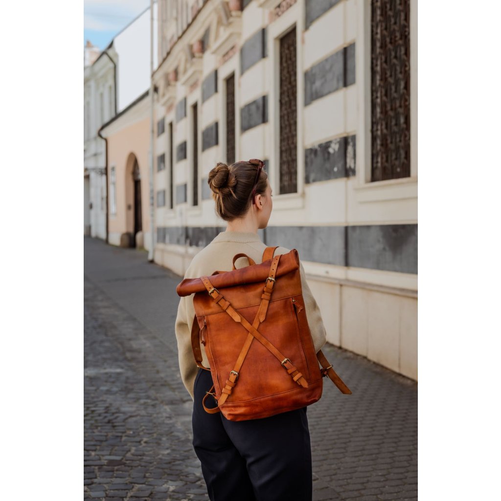 Kožený batoh hnedý Roll-top Lixus Berber
