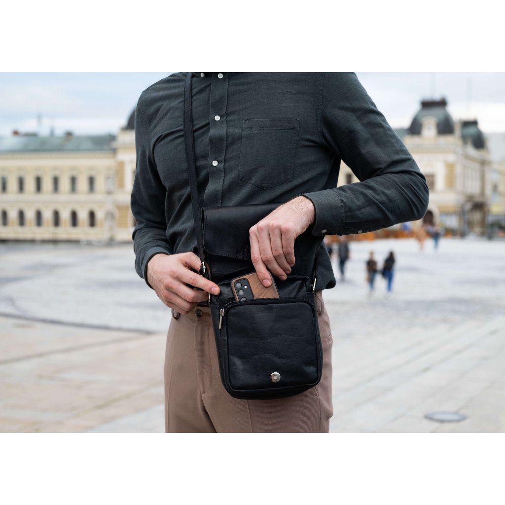 Kožená crossbody taštička čierna