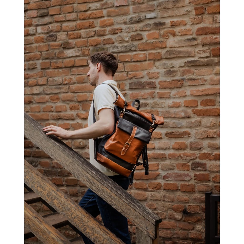 Kožený batoh hnedo-čierny Roll-top Toubkal Berber
